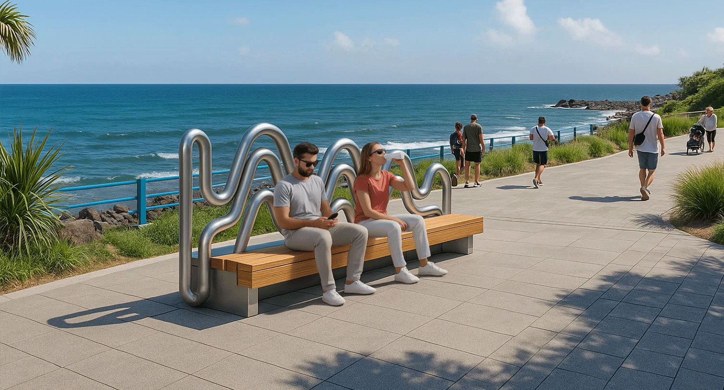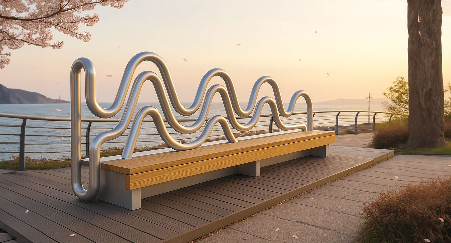 웨이브라인(WaveLine) 벤치|PND-BB025-060 제품목록으로 바로가기 자료 및 바로가기 나라장터 바로연결 도면 다운로드 시공사진 보러가기 기타 파도 형태의 스테인리스 프레임으로 ‘흐름과 자유로움’을 표현한 조형 벤치입니다. 원목 상판과의 조화로 따뜻함과 세련미를 더하며, 곡선 구조가 포토존 역할을 해 공간에 활력을 넣습니다. 제품명 웨이브라인(WaveLine) 벤치|PND-BB025-060 물품식별번호 26037322 규격 5135×895×1795mm 재질 stl, galvanized, hard wood 웨이브라인(WaveLine) 벤치|PND-BB025-060 물품식별번호 26037322 규격 5135×895×1795mm 재질 stl, galvanized, hard wood 기타 파도 형태의 스테인리스 프레임으로 ‘흐름과 자유로움’을 표현한 조형 벤치입니다. 원목 상판과의 조화로 따뜻함과 세련미를 더하며, 곡선 구조가 포토존 역할을 해 공간에 활력을 넣습니다. 자료 및 바로가기 나라장터 바로연결 도면 다운로드 시공사진 보러가기