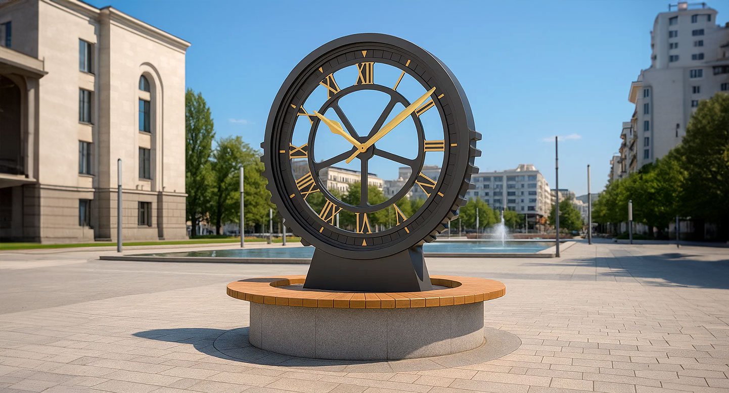 어반 타임(Urban Time) 아트클록벤치|PND-BB025-050 제품목록으로 바로가기 자료 및 바로가기 나라장터 바로연결 도면 다운로드 시공사진 보러가기 기타 고전 로마숫자 다이얼을 재해석한 클래식 조형벤치입니다. 거대한 시계 구조로 시간의 흐름과 도시의 연결을 상징하며, 블랙 메탈과 골드 포인트가 품격 있는 대비를 이루고, 원형 데크 좌석이 휴식과 머무름의 공간을 제공합니다. 제품명 어반 타임(Urban Time) 아트클록벤치|PND-BB025-050 물품식별번호 26027576 규격 3000×3000×3195mm 재질 stl, galvanized, hard wood 어반 타임(Urban Time) 아트클록벤치|PND-BB025-050 물품식별번호 26027576 규격 3000×3000×3195mm 재질 stl, galvanized, hard wood 기타 고전 로마숫자 다이얼을 재해석한 클래식 조형벤치입니다. 거대한 시계 구조로 시간의 흐름과 도시의 연결을 상징하며, 블랙 메탈과 골드 포인트가 품격 있는 대비를 이루고, 원형 데크 좌석이 휴식과 머무름의 공간을 제공합니다. 자료 및 바로가기 나라장터 바로연결 도면 다운로드 시공사진 보러가기