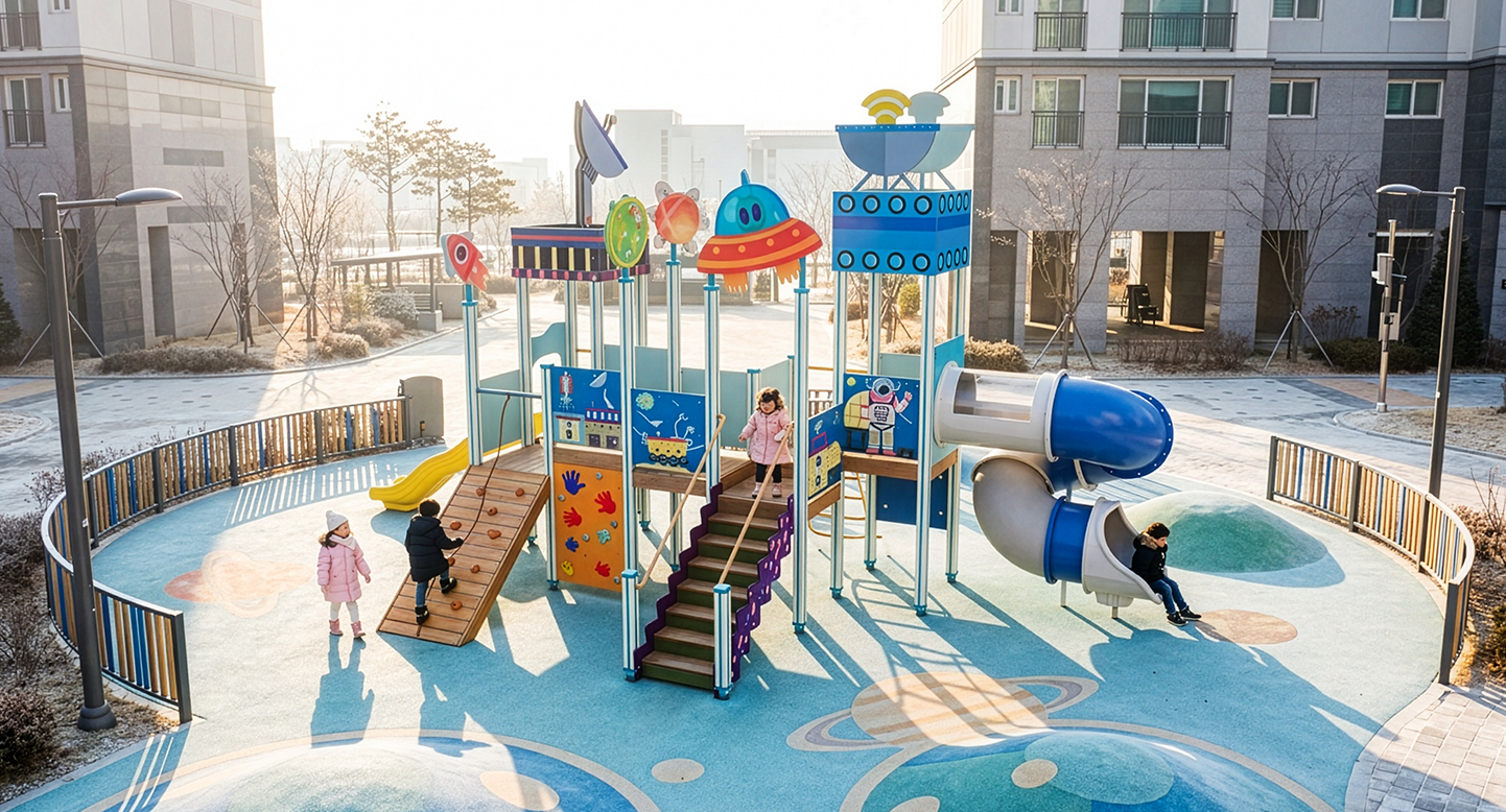 코스믹 브릿지 스테이션 (Cosmic Bridge Station)|PNDPG-010-9 제품목록으로 바로가기 자료 및 바로가기 나라장터 바로연결 도면 다운로드 시공사진 보러가기 기타 우주정거장을 모티브로 한 입체형 놀이대입니다. UFO·행성·위성 그래픽과 안테나 포인트로 테마감을 살리고, 계단–브릿지–슬라이드 동선을 자연스럽게 연결해 아이들이 우주 탐험하듯 즐길 수 있도록 구성했습니다. 제품명 코스믹 브릿지 스테이션 (Cosmic Bridge Station)|PNDPG-010-9 물품식별번호 25356436|안전인증번호 : CA021H145-3001 규격 9.078×5.110×4,895(H) 재질 stl, hpl, pe, hard wood 코스믹 브릿지 스테이션 (Cosmic Bridge Station)|PNDPG-010-9 물품식별번호 25356436|안전인증번호 : CA021H145-3001 규격 9.078×5.110×4,895(H) 재질 stl, hpl, pe, hard wood 기타 우주정거장을 모티브로 한 입체형 놀이대입니다. UFO·행성·위성 그래픽과 안테나 포인트로 테마감을 살리고, 계단–브릿지–슬라이드 동선을 자연스럽게 연결해 아이들이 우주 탐험하듯 즐길 수 있도록 구성했습니다. 자료 및 바로가기 나라장터 바로연결 도면 다운로드 시공사진 보러가기