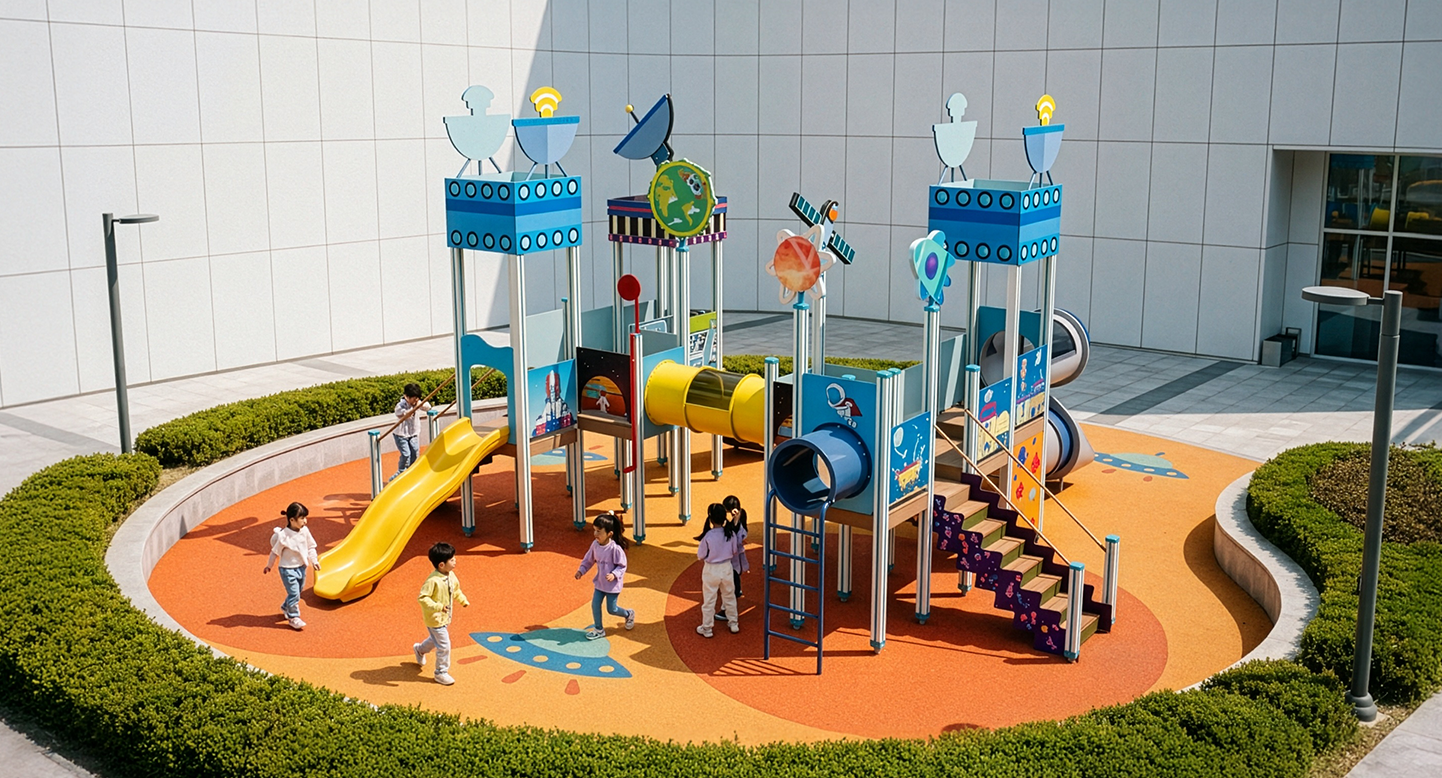코스믹 브릿지 타워 (Cosmic Bridge Tower)|PNDPG-010-6 제품목록으로 바로가기 자료 및 바로가기 나라장터 바로연결 도면 다운로드 시공사진 보러가기 기타 우주 관측소와 행성을 모티브로 한 탐험형 놀이대입니다. 서로 다른 높이의 타워를 브릿지로 연결해 이동 동선을 자연스럽게 만들고, 우주 그래픽 패널로 아이들의 상상력과 호기심을 자극합니다. 제품명 코스믹 브릿지 타워 (Cosmic Bridge Tower)|PNDPG-010-6 물품식별번호 25356433|안전인증번호 : CA021H145-3001 규격 8,226×8,510×4,895(H) 재질 stl, hpl, pe, hard wood 코스믹 브릿지 타워 (Cosmic Bridge Tower)|PNDPG-010-6 물품식별번호 25356433|안전인증번호 : CA021H145-3001 규격 8,226×8,510×4,895(H) 재질 stl, hpl, pe, hard wood 기타 우주 관측소와 행성을 모티브로 한 탐험형 놀이대입니다. 서로 다른 높이의 타워를 브릿지로 연결해 이동 동선을 자연스럽게 만들고, 우주 그래픽 패널로 아이들의 상상력과 호기심을 자극합니다. 자료 및 바로가기 나라장터 바로연결 도면 다운로드 시공사진 보러가기