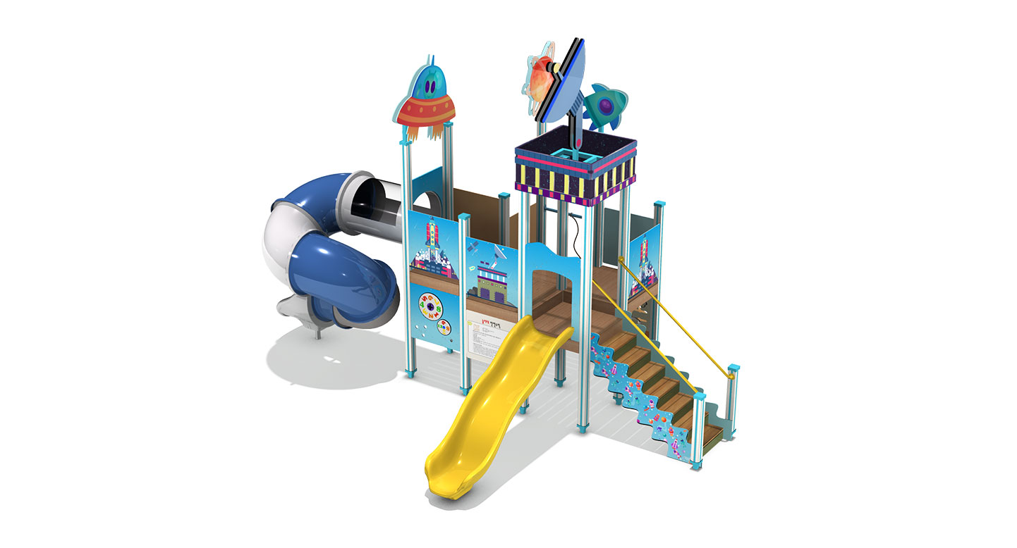 유니버스 큐브 스테이션 (Universe Cube Station)|PNDPG-010-11 제품목록으로 바로가기 자료 및 바로가기 나라장터 바로연결 도면 다운로드 시공사진 보러가기 기타 우주 탐험 테마의 소형 복합 놀이대입니다. 안테나 타워와 UFO 장식을 적용하고, 계단–브릿지–슬라이드를 간결하게 연결해 이동 동선을 자연스럽게 구성했으며, 블루·옐로 포인트로 밝고 미래적인 분위기를 연출했습니다. 제품명 유니버스 큐브 스테이션 (Universe Cube Station)|PNDPG-010-11 물품식별번호 25356438|안전인증번호 : CA021H145-3001 규격 6,431×5,469×4,645(H) 재질 stl, hpl, pe, hard wood 유니버스 큐브 스테이션 (Universe Cube Station)|PNDPG-010-11 물품식별번호 25356438|안전인증번호 : CA021H145-3001 규격 6,431×5,469×4,645(H) 재질 stl, hpl, pe, hard wood 기타 우주 탐험 테마의 소형 복합 놀이대입니다. 안테나 타워와 UFO 장식을 적용하고, 계단–브릿지–슬라이드를 간결하게 연결해 이동 동선을 자연스럽게 구성했으며, 블루·옐로 포인트로 밝고 미래적인 분위기를 연출했습니다. 자료 및 바로가기 나라장터 바로연결 도면 다운로드 시공사진 보러가기