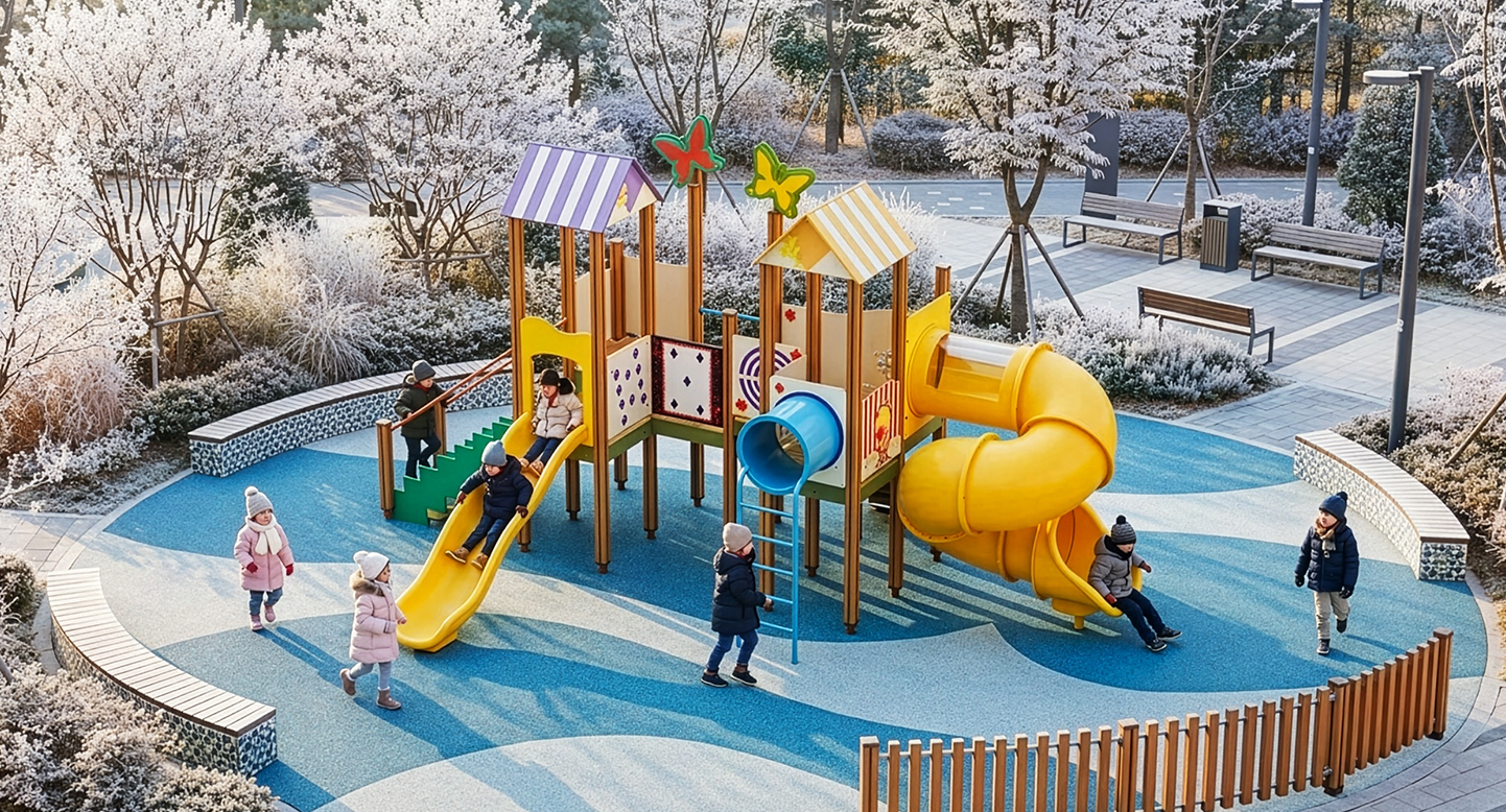 버터플라이 키즈파크 (Butterfly Kids Park)|PNDPG-001-10 제품목록으로 바로가기 자료 및 바로가기 나라장터 바로연결 도면 다운로드 시공사진 보러가기 기타 나비 장식과 컬러 지붕을 더해 밝고 즐거운 분위기를 만든 조합놀이대입니다. 다양한 패널 놀이와 두 가지 슬라이드를 통해 아이들이 오르고 뛰고 탐색하는 재미를 느낄 수 있도록 구성했습니다. 제품명 버터플라이 키즈파크 (Butterfly Kids Park)|PNDPG-001-10 물품식별번호 25356406|안전인증번호 : CA021H145-3001 규격 7,283×5,469×3,770(H) 재질 stl, hpl, pe, hard wood 버터플라이 키즈파크 (Butterfly Kids Park)|PNDPG-001-10 물품식별번호 25356406|안전인증번호 : CA021H145-3001 규격 7,283×5,469×3,770(H) 재질 stl, hpl, pe, hard wood 기타 나비 장식과 컬러 지붕을 더해 밝고 즐거운 분위기를 만든 조합놀이대입니다. 다양한 패널 놀이와 두 가지 슬라이드를 통해 아이들이 오르고 뛰고 탐색하는 재미를 느낄 수 있도록 구성했습니다. 자료 및 바로가기 나라장터 바로연결 도면 다운로드 시공사진 보러가기