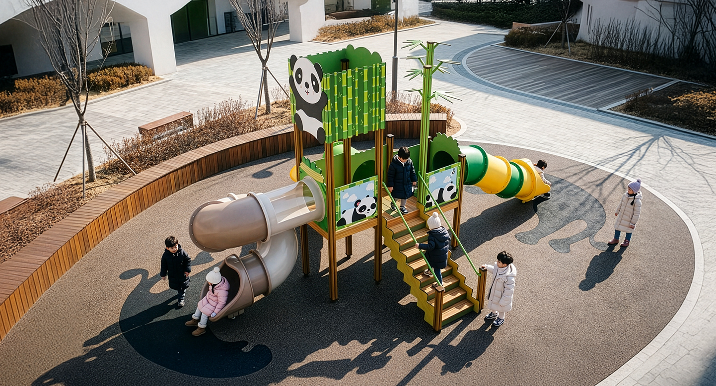 판다 밴부 슬라이드타워 (Panda Bamboo Slide Tower)|PNDPG-008-8 제품목록으로 바로가기 자료 및 바로가기 나라장터 바로연결 도면 다운로드 시공사진 보러가기 기타 대나무 숲과 판다를 모티브로 한 자연친화 슬라이드형 놀이시설입니다. 우드·그린 톤과 터널·슬라이드 요소를 결합해 아이들이 숲 속을 미끄러지며 탐험하는 듯한 즐거움을 느끼도록 구성했습니다. 제품명 판다 밴부 슬라이드타워 (Panda Bamboo Slide Tower)|PNDPG-008-8 물품식별번호 25356382|안전인증번호 : CA023H10037-3002 규격 8.761×3.896×4.390(H) 재질 stl, hpl, pe, hard wood 판다 밴부 슬라이드타워 (Panda Bamboo Slide Tower)|PNDPG-008-8 물품식별번호 25356382|안전인증번호 : CA023H10037-3002 규격 8.761×3.896×4.390(H) 재질 stl, hpl, pe, hard wood 기타 대나무 숲과 판다를 모티브로 한 자연친화 슬라이드형 놀이시설입니다. 우드·그린 톤과 터널·슬라이드 요소를 결합해 아이들이 숲 속을 미끄러지며 탐험하는 듯한 즐거움을 느끼도록 구성했습니다. 자료 및 바로가기 나라장터 바로연결 도면 다운로드 시공사진 보러가기
