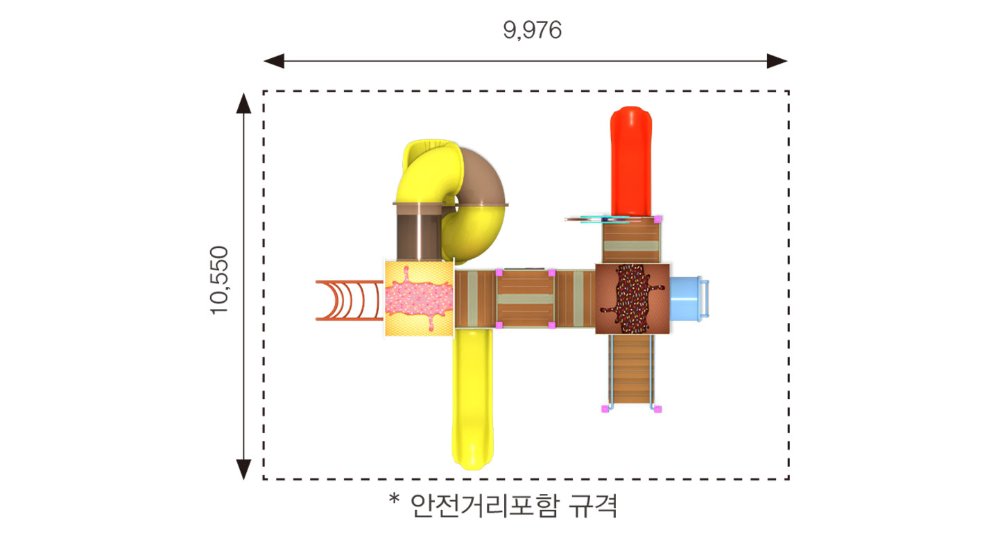 스위트 플레이 라인 (Sweet Play Line)|PNDPG-012-8 제품목록으로 바로가기 자료 및 바로가기 나라장터 바로연결 도면 다운로드 시공사진 보러가기 기타 아이스크림 지붕과 사탕 장식으로 달콤한 디저트 분위기를 담은 놀이시설입니다. 직선 동선에 슬라이드·터널·패널을 자연스럽게 연결해 아이들이 안전하고 즐겁게 다양한 놀이를 경험하도록 구성했습니다. 제품명 스위트 플레이 라인 (Sweet Play Line)|PNDPG-012-8 물품식별번호 25356638|안전인증번호 : CA023H10037-3003 규격 6.476×6.550×3,900(H) 재질 stl, hpl, pe, hard wood 스위트 플레이 라인 (Sweet Play Line)|PNDPG-012-8 물품식별번호 25356638|안전인증번호 : CA023H10037-3003 규격 6.476×6.550×3,900(H) 재질 stl, hpl, pe, hard wood 기타 아이스크림 지붕과 사탕 장식으로 달콤한 디저트 분위기를 담은 놀이시설입니다. 직선 동선에 슬라이드·터널·패널을 자연스럽게 연결해 아이들이 안전하고 즐겁게 다양한 놀이를 경험하도록 구성했습니다. 자료 및 바로가기 나라장터 바로연결 도면 다운로드 시공사진 보러가기