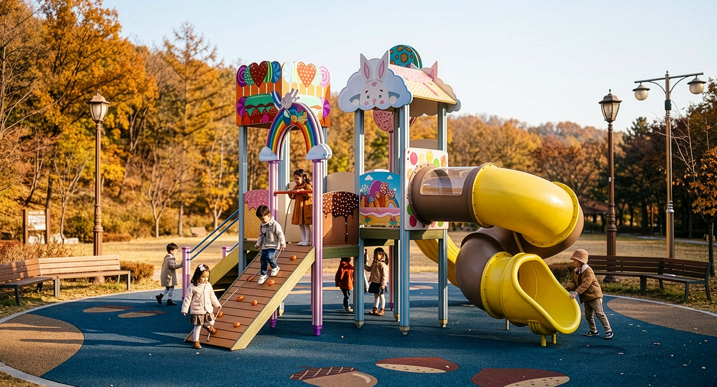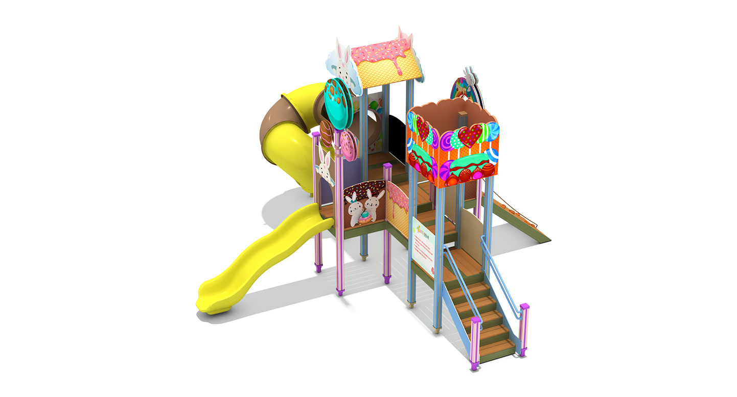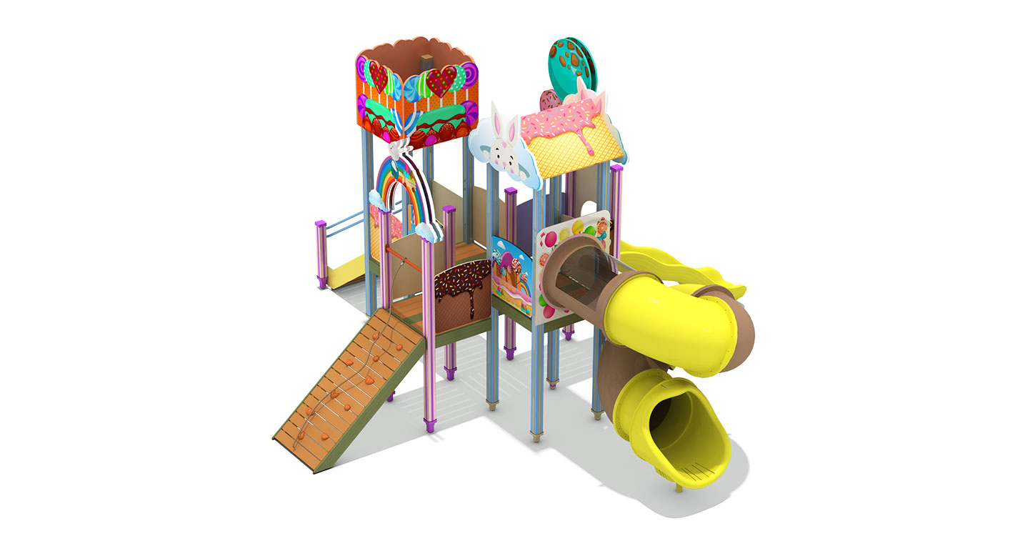 러블리 스위트 타워 (Lovely Sweet Tower)|PNDPG-012-7 제품목록으로 바로가기 자료 및 바로가기 나라장터 바로연결 도면 다운로드 시공사진 보러가기 기타 아이스크림과 사탕 장식을 적용한 컬러풀 타워형 놀이대로, 슬라이드·경사로·터널이 자연스럽게 연결돼 아이들이 달콤한 디저트 세상을 탐험하듯 즐겁게 활동할 수 있도록 구성했습니다. 제품명 러블리 스위트 타워 (Lovely Sweet Tower)|PNDPG-012-7 물품식별번호 25356637|안전인증번호 : CA023H10037-3003 규격 6.319×6.840×3,900(H) 재질 stl, hpl, pe, hard wood 러블리 스위트 타워 (Lovely Sweet Tower)|PNDPG-012-7 물품식별번호 25356637|안전인증번호 : CA023H10037-3003 규격 6.319×6.840×3,900(H) 재질 stl, hpl, pe, hard wood 기타 아이스크림과 사탕 장식을 적용한 컬러풀 타워형 놀이대로, 슬라이드·경사로·터널이 자연스럽게 연결돼 아이들이 달콤한 디저트 세상을 탐험하듯 즐겁게 활동할 수 있도록 구성했습니다. 자료 및 바로가기 나라장터 바로연결 도면 다운로드 시공사진 보러가기