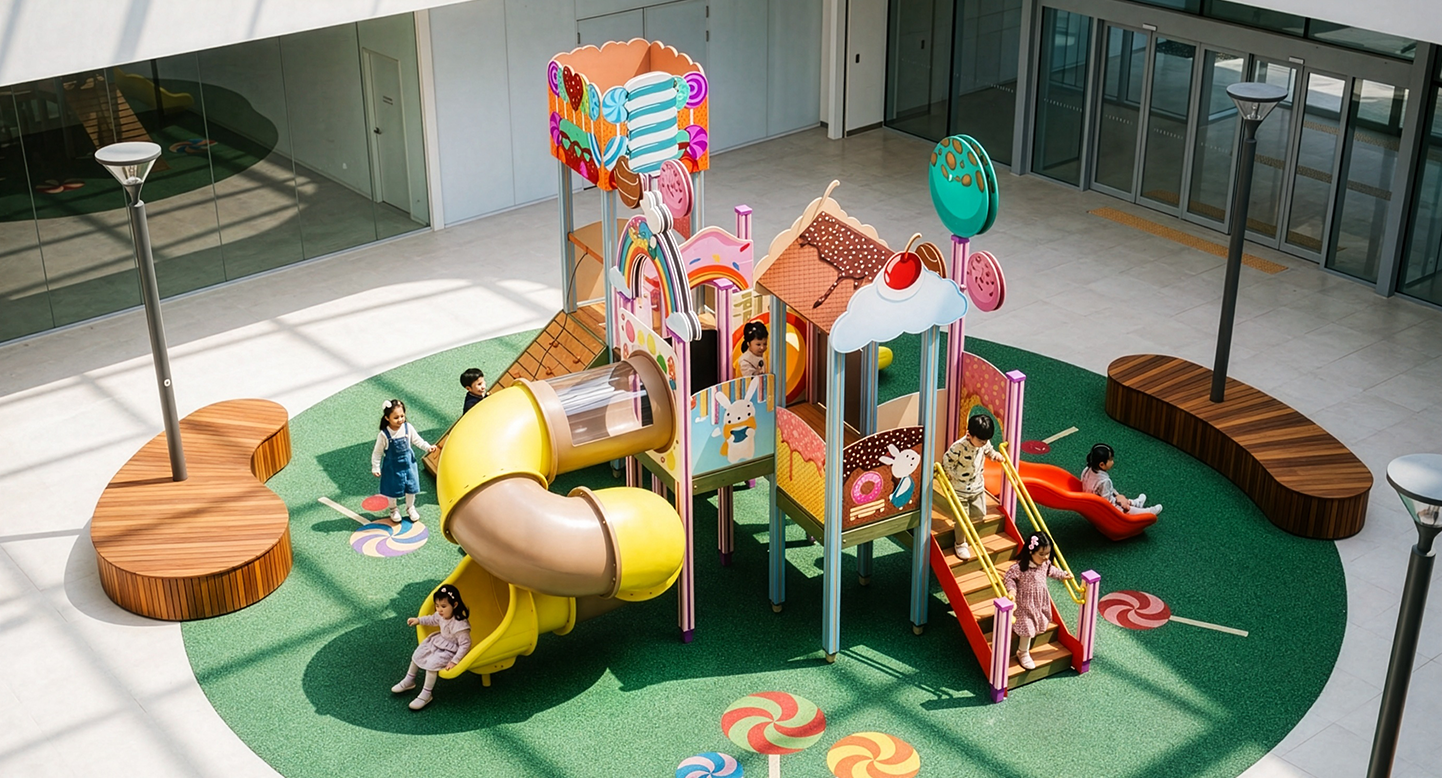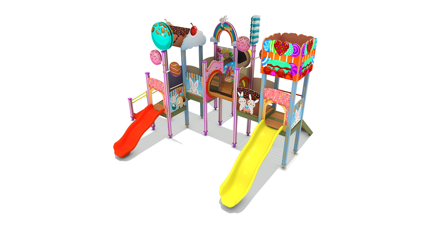 스위트 듀얼 슬라이드 파크 (Sweet Dual Slide Park)|PNDPG-012-6 제품목록으로 바로가기 자료 및 바로가기 나라장터 바로연결 도면 다운로드 시공사진 보러가기 기타 사탕·초콜릿·도넛 등 디저트 그래픽을 적용한 밝고 즐거운 테마 놀이대입니다. 양쪽 슬라이드와 다양한 장식 요소로 아이들이 캔디 월드를 탐험하듯 즐겁게 활동할 수 있도록 구성했습니다. 제품명 스위트 듀얼 슬라이드 파크 (Sweet Dual Slide Park)|PNDPG-012-6 물품식별번호 25356636|안전인증번호 : CA023H10037-3003 규격 6.170×6.910×3,990(H) 재질 stl, hpl, pe, hard wood 스위트 듀얼 슬라이드 파크 (Sweet Dual Slide Park)|PNDPG-012-6 물품식별번호 25356636|안전인증번호 : CA023H10037-3003 규격 6.170×6.910×3,990(H) 재질 stl, hpl, pe, hard wood 기타 사탕·초콜릿·도넛 등 디저트 그래픽을 적용한 밝고 즐거운 테마 놀이대입니다. 양쪽 슬라이드와 다양한 장식 요소로 아이들이 캔디 월드를 탐험하듯 즐겁게 활동할 수 있도록 구성했습니다. 자료 및 바로가기 나라장터 바로연결 도면 다운로드 시공사진 보러가기