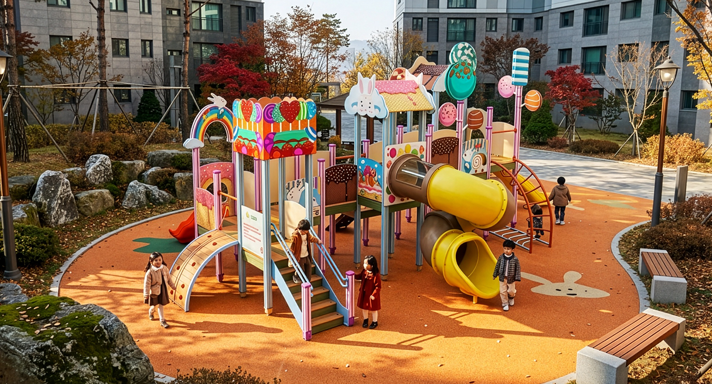 스위트 판타지 파크 (Sweet Fantasy Park)|PNDPG-012-4 제품목록으로 바로가기 자료 및 바로가기 나라장터 바로연결 도면 다운로드 시공사진 보러가기 기타 사탕·초콜릿·아이스크림 장식을 더한 달콤한 테마 놀이대입니다. 다양한 슬라이드와 연결 동선으로 아이들이 캔디 세상을 탐험하듯 즐겁게 활동할 수 있도록 구성했습니다. 제품명 스위트 판타지 파크 (Sweet Fantasy Park)|PNDPG-012-4 물품식별번호 25356634|안전인증번호 : CA023H10037-3003 규격 10.710×7.050×3,990(H) 재질 stl, hpl, pe, hard wood 스위트 판타지 파크 (Sweet Fantasy Park)|PNDPG-012-4 물품식별번호 25356634|안전인증번호 : CA023H10037-3003 규격 10.710×7.050×3,990(H) 재질 stl, hpl, pe, hard wood 기타 사탕·초콜릿·아이스크림 장식을 더한 달콤한 테마 놀이대입니다. 다양한 슬라이드와 연결 동선으로 아이들이 캔디 세상을 탐험하듯 즐겁게 활동할 수 있도록 구성했습니다. 자료 및 바로가기 나라장터 바로연결 도면 다운로드 시공사진 보러가기