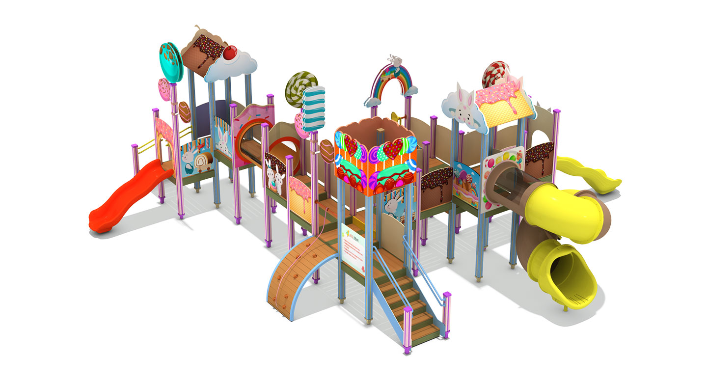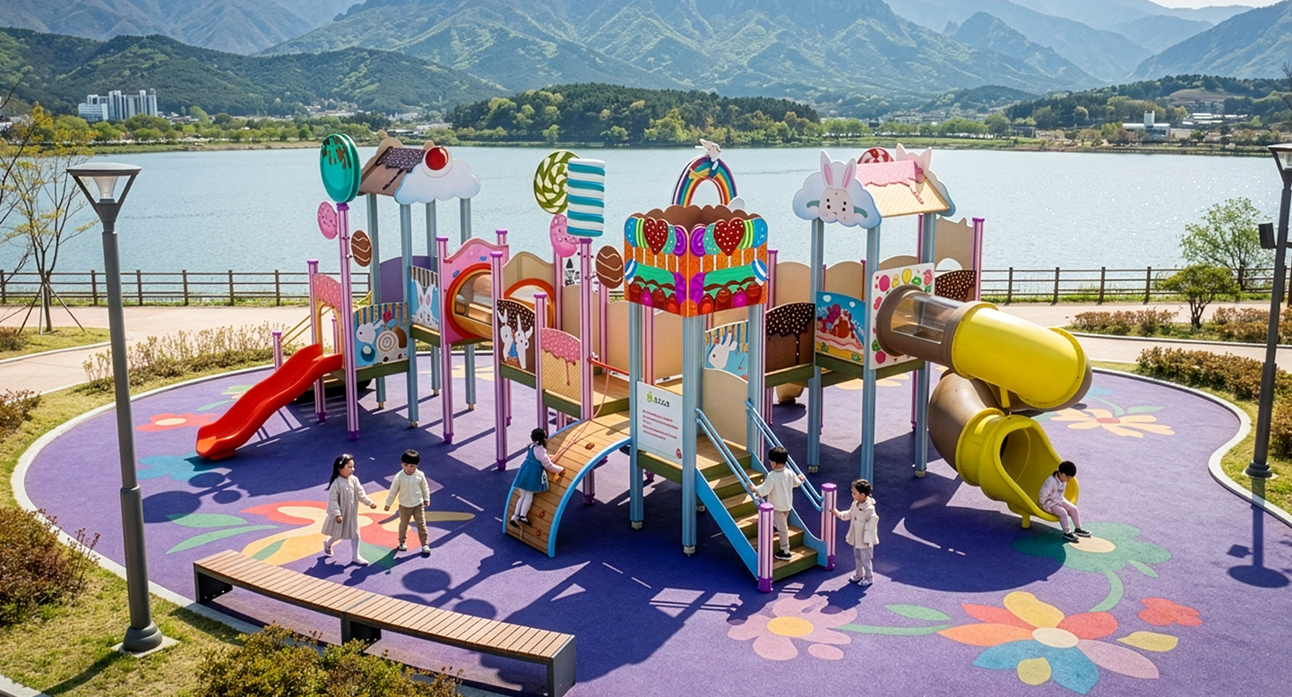 캔디팝 플레이타운 (Candy Pop Playtown)|PNDPG-012-2 제품목록으로 바로가기 자료 및 바로가기 나라장터 바로연결 도면 다운로드 시공사진 보러가기 기타 아이스크림·도넛·롤리팝 장식을 적용한 컬러풀 테마 놀이대입니다. 여러 슬라이드와 브릿지가 연결되어 아이들이 달콤한 캔디 세상을 탐험하듯 즐겁게 활동할 수 있도록 구성했습니다. 제품명 캔디팝 플레이타운 (Candy Pop Playtown)|PNDPG-012-2 물품식별번호 25356632|안전인증번호 : CA023H10037-3003 규격 10.800×9,720×3,990(H) 재질 stl, hpl, pe, hard wood 캔디팝 플레이타운 (Candy Pop Playtown)|PNDPG-012-2 물품식별번호 25356632|안전인증번호 : CA023H10037-3003 규격 10.800×9,720×3,990(H) 재질 stl, hpl, pe, hard wood 기타 아이스크림·도넛·롤리팝 장식을 적용한 컬러풀 테마 놀이대입니다. 여러 슬라이드와 브릿지가 연결되어 아이들이 달콤한 캔디 세상을 탐험하듯 즐겁게 활동할 수 있도록 구성했습니다. 자료 및 바로가기 나라장터 바로연결 도면 다운로드 시공사진 보러가기