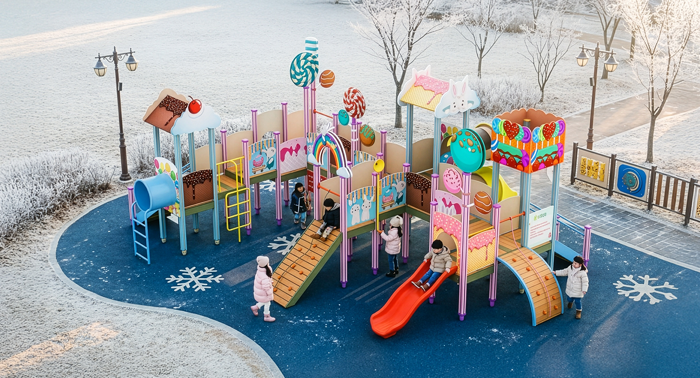 스위트 파라다이스 (Sweet Paradise)|PNDPG-012-1 제품목록으로 바로가기 자료 및 바로가기 나라장터 바로연결 도면 다운로드 시공사진 보러가기 기타 아이스크림·도넛·사탕 장식을 적용한 달콤한 테마 놀이대입니다. 알록달록한 색감과 슬라이드·클라이밍·브릿지 동선이 이어져 아이들이 캔디월드를 탐험하듯 즐겁게 활동할 수 있도록 구성했습니다. 제품명 스위트 파라다이스 (Sweet Paradise)|PNDPG-012-1 물품식별번호 25356631|안전인증번호 : CA023H10037-3003 규격 10.645×8.241×3,990(H) 재질 stl, hpl, pe, hard wood 스위트 파라다이스 (Sweet Paradise)|PNDPG-012-1 물품식별번호 25356631|안전인증번호 : CA023H10037-3003 규격 10.645×8.241×3,990(H) 재질 stl, hpl, pe, hard wood 기타 아이스크림·도넛·사탕 장식을 적용한 달콤한 테마 놀이대입니다. 알록달록한 색감과 슬라이드·클라이밍·브릿지 동선이 이어져 아이들이 캔디월드를 탐험하듯 즐겁게 활동할 수 있도록 구성했습니다. 자료 및 바로가기 나라장터 바로연결 도면 다운로드 시공사진 보러가기