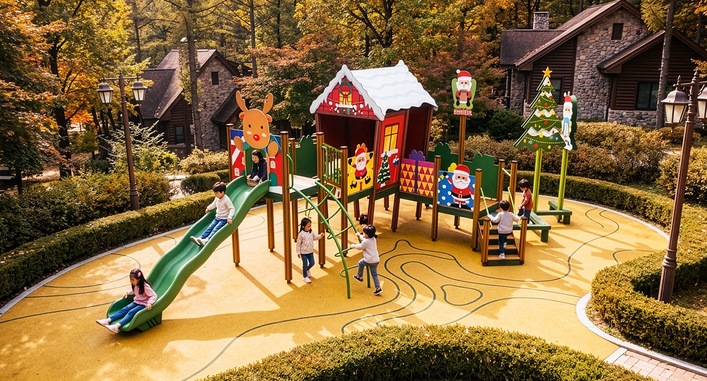 루돌프 스노우빌리지 (Rudolph Snow Village)|PNDPG-011-7 제품목록으로 바로가기 자료 및 바로가기 나라장터 바로연결 도면 다운로드 시공사진 보러가기 기타 눈 덮인 산타 마을과 루돌프 아이콘을 중심으로 꾸며, 우드톤과 그린 포인트로 따뜻한 분위기를 만든 크리스마스 테마 놀이대입니다. 아이들이 눈 내린 마을을 탐험하듯 자연스럽게 이동하고 즐길 수 있도록 구성했습니다. 제품명 루돌프 스노우빌리지 (Rudolph Snow Village)|PNDPG-011-7 물품식별번호 25356615|안전인증번호 : CA023H10037-3002 규격 11,065 X 5,016 X 3,880(H) 재질 stl, hpl, pe, hard wood 루돌프 스노우빌리지 (Rudolph Snow Village)|PNDPG-011-7 물품식별번호 25356615|안전인증번호 : CA023H10037-3002 규격 11,065 X 5,016 X 3,880(H) 재질 stl, hpl, pe, hard wood 기타 눈 덮인 산타 마을과 루돌프 아이콘을 중심으로 꾸며, 우드톤과 그린 포인트로 따뜻한 분위기를 만든 크리스마스 테마 놀이대입니다. 아이들이 눈 내린 마을을 탐험하듯 자연스럽게 이동하고 즐길 수 있도록 구성했습니다. 자료 및 바로가기 나라장터 바로연결 도면 다운로드 시공사진 보러가기