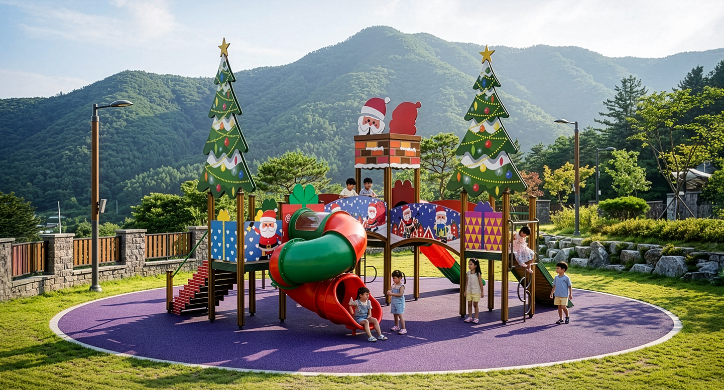 메리 트리 터널파크 (Merry Tree Tunnel Park)|PNDPG-011-6 제품목록으로 바로가기 자료 및 바로가기 나라장터 바로연결 도면 다운로드 시공사진 보러가기 기타 양쪽 크리스마스트리와 중앙 산타 굴뚝 타워를 연결해 트리 숲을 지나듯 즐기는 테마 놀이대입니다. 레드·그린 슬라이드와 산타 패널을 더해 따뜻한 크리스마스 분위기를 완성합니다. 제품명 메리 트리 터널파크 (Merry Tree Tunnel Park)|PNDPG-011-6 물품식별번호 25356574|안전인증번호 : CA023H10037-3002 규격 9,280 X 6,450 X 5,640(H) 재질 stl, hpl, pe, hard wood 메리 트리 터널파크 (Merry Tree Tunnel Park)|PNDPG-011-6 물품식별번호 25356574|안전인증번호 : CA023H10037-3002 규격 9,280 X 6,450 X 5,640(H) 재질 stl, hpl, pe, hard wood 기타 양쪽 크리스마스트리와 중앙 산타 굴뚝 타워를 연결해 트리 숲을 지나듯 즐기는 테마 놀이대입니다. 레드·그린 슬라이드와 산타 패널을 더해 따뜻한 크리스마스 분위기를 완성합니다. 자료 및 바로가기 나라장터 바로연결 도면 다운로드 시공사진 보러가기