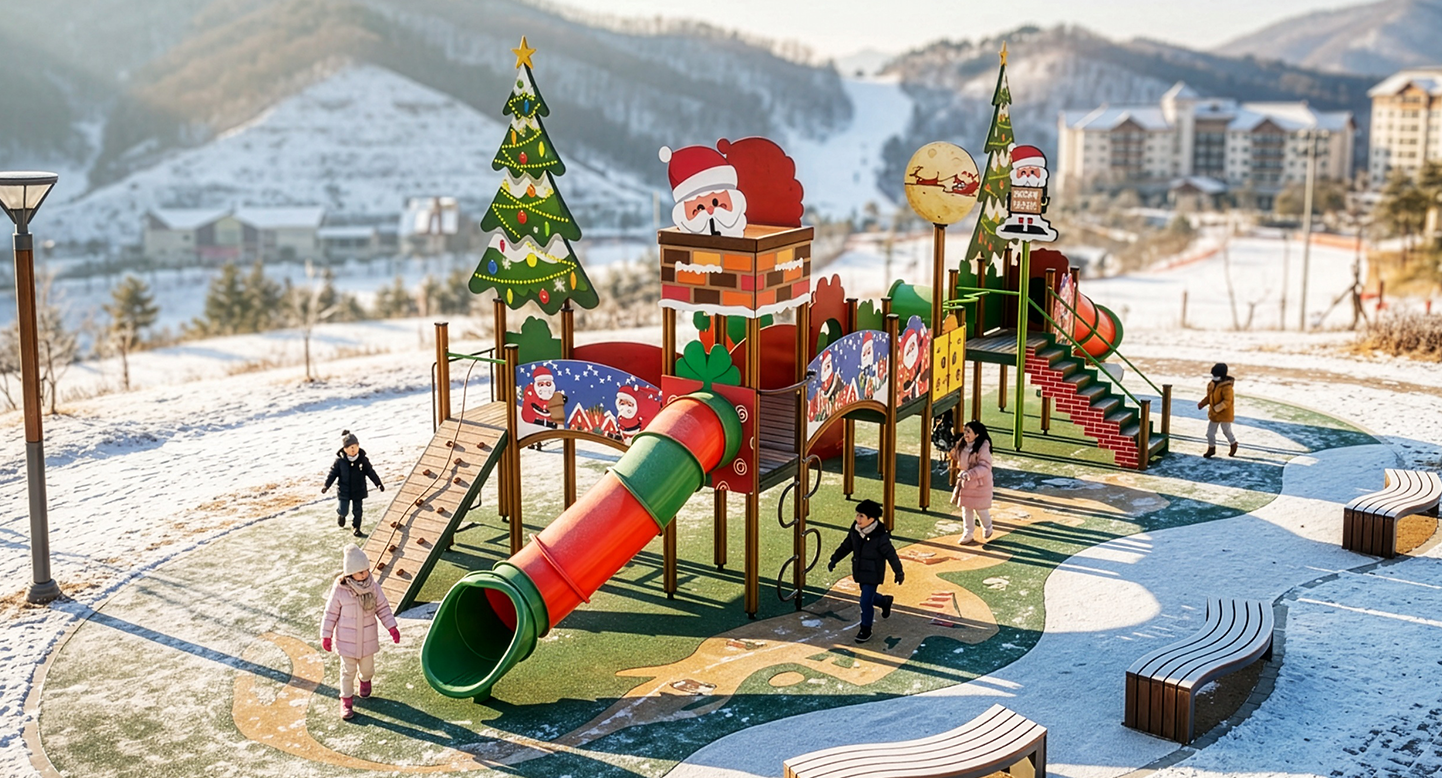 산타 크리스마스 빌리지 (Santa Christmas Village)|PNDPG-011-4 제품목록으로 바로가기 자료 및 바로가기 나라장터 바로연결 도면 다운로드 시공사진 보러가기 기타 대형 크리스마스트리와 산타 요소를 길게 배열해 ‘크리스마스 마을을 모험하는 느낌’을 주는 놀이대입니다. 선물 상자 패널과 레드·그린 조합 슬라이드로 따뜻하고 축제 같은 분위기를 연출합니다. 제품명 산타 크리스마스 빌리지 (Santa Christmas Village)|PNDPG-011-4 물품식별번호 25356560|안전인증번호 : CA023H10037-3002 규격 16,867×6,350×5,640(H) 재질 stl, hpl, pe, hard wood 산타 크리스마스 빌리지 (Santa Christmas Village)|PNDPG-011-4 물품식별번호 25356560|안전인증번호 : CA023H10037-3002 규격 16,867×6,350×5,640(H) 재질 stl, hpl, pe, hard wood 기타 대형 크리스마스트리와 산타 요소를 길게 배열해 ‘크리스마스 마을을 모험하는 느낌’을 주는 놀이대입니다. 선물 상자 패널과 레드·그린 조합 슬라이드로 따뜻하고 축제 같은 분위기를 연출합니다. 자료 및 바로가기 나라장터 바로연결 도면 다운로드 시공사진 보러가기